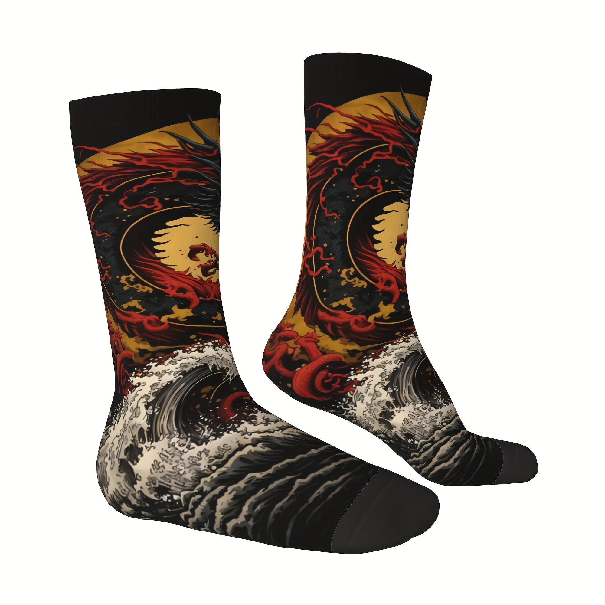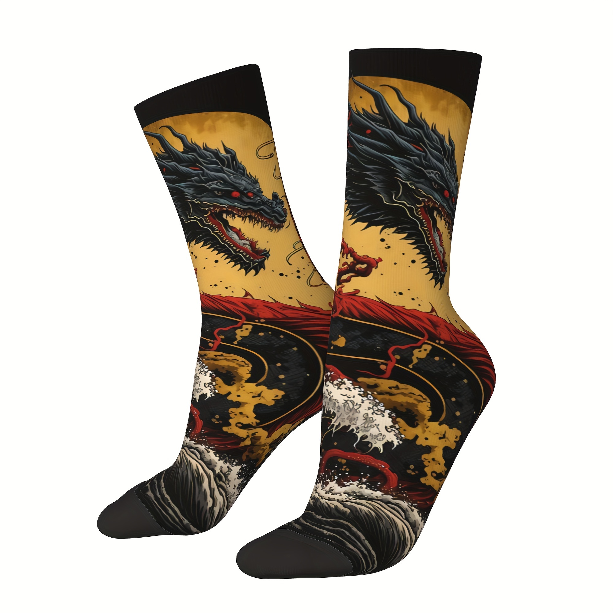 1 Pair Of Unisex Harajuku Vintage Style Novelty Pattern Crew Socks, Trendy 3D Digital Printed Men Women Socks, Crazy Funny Socks For Gifts